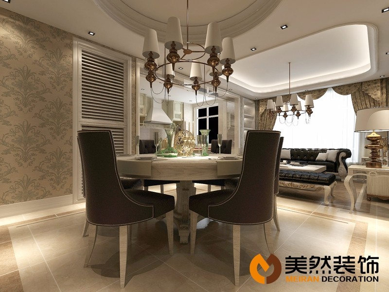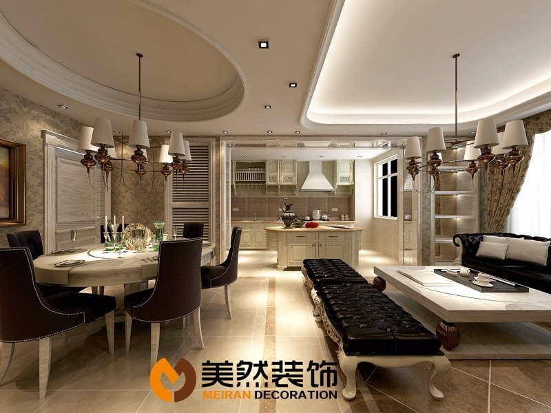 “美式風格不僅僅是一種風格,更是一種對生活的態度,它是有溫度的、有態度的、積極向上的,與業主理想中的家很貼切。”為了考慮衛生間的功能使用,把洗衣機設計在廚房,使整體感簡潔明了。與過道交接處開了一個直線埡口,這樣在廚房里也能第一時間知道家人回來了。