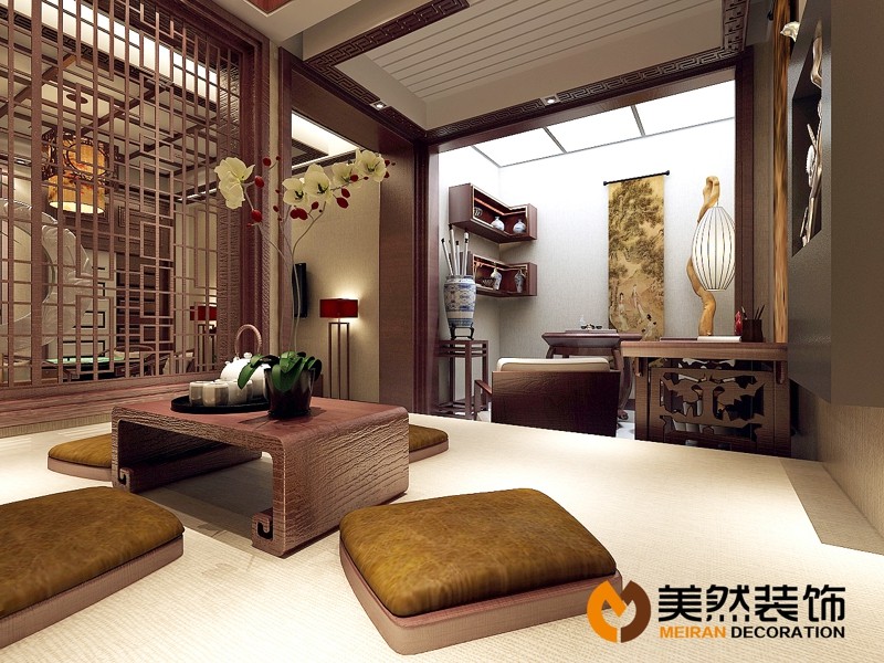 本案追求高雅簡潔卻又低調的淡雅氣質。這是一個三層的別墅,一層是起居室和餐廳,二層則是設計作為十分私密的私人空間,是主人家的臥室和主要活動空間,生活得精致通常是以舒適作為基本,然后是周到。地下一層是娛樂空間。運用現代東方主義設計,以耐人尋味的紅胡桃色作為主背景,一改往日繁瑣冗雜的修飾手法,用沉穩的筆觸勾勒出溫婉典雅氣質,糅合空間的色調,一切仿佛渾然天成。相近色系完美的跳躍搭配使得空間有著優雅的變化,隨處都展示著主人超脫的審美觀和悠閑淡然的氣質
